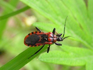 【右】アカシマサシガメで、ヤスデ類など各種の小動物を捕食するそうです。