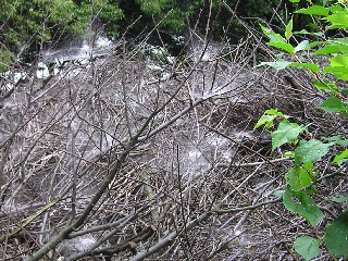 【中】タナグモの仲間が枯れ枝を積み重ねたところにたくさん巣を構えていました。何てクモでしょう。
