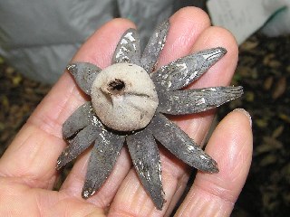 【右】ツチグリというキノコの仲間です。昨年生えたものでしょう。