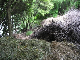 【中】池に近いところに枯れ草と枯れ枝が置かれていました。これ等が腐食した時、栄養分が池に流れ込むような気がします。