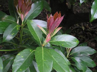 【右】タブノキの新芽が赤くきれいでした。