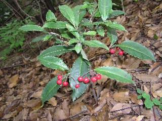 【中】マンリョウの実が鳥に食べられず残っていました。