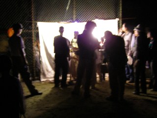 【左】水銀灯を点けて灯火に集まる虫を観察しています。