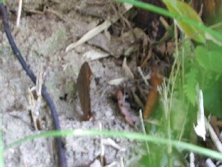 ニイニイゼミの声を聴きながら出発して間もなく朽ちた落ち葉を掘り起こすとミミズ、ダンゴムシやクロナガオサムシなどが慌てて這い回る姿を皆で観察、それらの食物連鎖のお話をしました。やがて日中には珍しく樹液を貪るコクワガタのメスを発見、皆歓声をあげました。開けた草原に出るとキリギリス達の所狭しの演奏会、一歩草叢に入ればバッタ類の飛翔観察などで時の経つのも忘れました。館に戻り、虫かごの中の虫達の名前や特徴などを説明しました。振り返りの中で、僕達の感想は『森の中は涼しくて楽しかった』、『また来て自分で見つけたい』、『捕った虫はよく観察してから逃がしてあげます』などしっかりと意志表示をされていました(小川/記)
