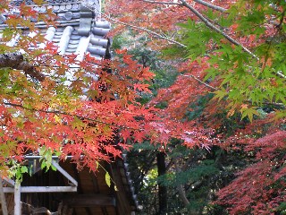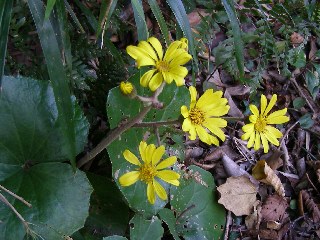 【左】本殿横のモミジ 【右】ツワブキ