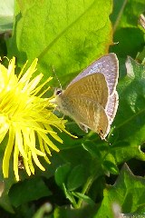 【左】ウラナミシジミ(左)。ヤマトシジミ(右)【右】トウカイタンポポが開花していました。