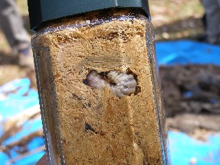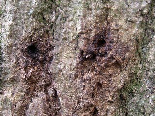 【中】カシノナガキクイムシの穿孔した跡でしょうか。