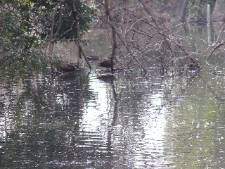 【左】お堀にカルガモがたくさんいました。