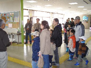 【左】地域文化センターで観察場所の案内をしています。