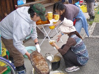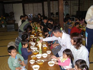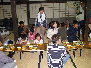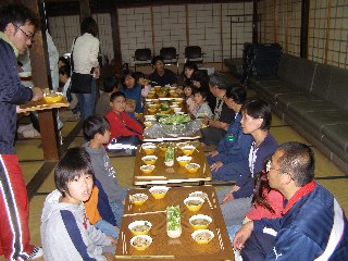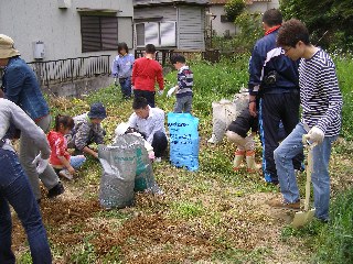 昼食は事前準備の筍ご飯に筍汁、レタス、茹でブロッコリー等を添えて皆で美味しく食べた後、食器洗いも皆できれいにしました。参加者の感想は「自分達で採ったものを食べるのはまた格別」、「筍掘りは見付けてから大変だった」、「サツマイモ植えにもまた来たい」などでした。今回の参加者の皆さんが一年を通じて”大自然と接して、その恵みを考える”リピーターとなって欲しいですね。一般参加者の解散後、会員間で次月のサツマイモの本番苗植えの前週位に再度畑整備すること(日程別途連絡)や本番では一般参加者の皆さんにはスコップ持参をお願いする事などを確認しました(小川/記)。