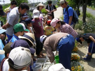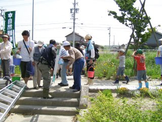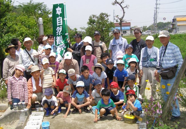 天気はまずまず、参加者の皆さんも元気いっぱいで梅の館に集合しました。梅の館で参加者に観察の仕方について諸注意をしてから現地に徒歩で移動しました。信濃川に堆積していた土砂を取り除いたため川面が下がったためはしごを使って降りました。子供たちにはスリルがあり、いい体験になったと思います。土砂を取り除いたため少なくなった魚はメダカ、オイカワ、マドジョウ、などで、ナマズは見られなくなってしまいました。それでも信濃川は上流に汚水を出すところがないためいろいろな種類の魚や水生昆虫がみられました。天気がよく参加者の皆さんは楽しく観察をすることができました。(記・金内)