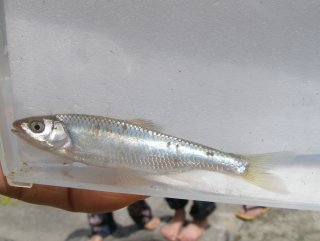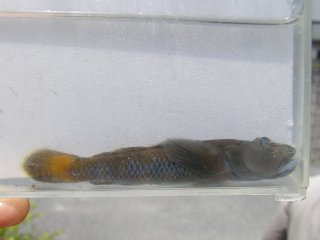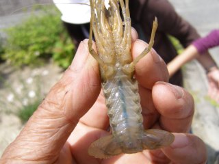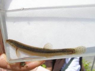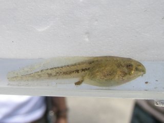 【左】知多には比較的多いダルマガエル 【右】アユが遡上していました。