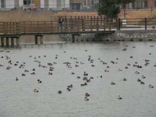 【中】馬池に来たカモの群れ