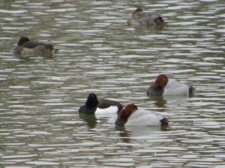 【右】キンクロハジロ(白黒の鳥)