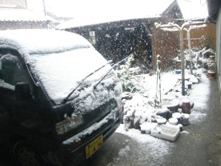【左】雪が積もりました。