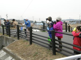 【右】馬池の堤防で観察