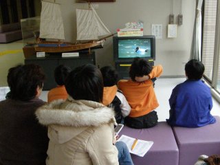 【中】雪が降ったので早めに引き上げ、野鳥観察入門のビデオを見ました。
