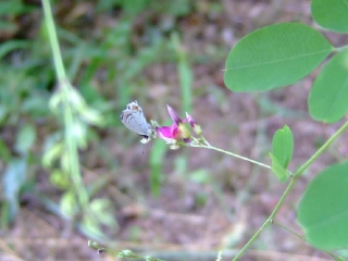 【左】キマダラカミキリが樹液を吸っていました。 【右】ハギにツバメシジミがやってきてました。