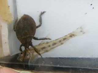 アメンボウ、オケラ、コオイムシ、マツモム、オニヤンマヤゴ、シオカラトンボヤゴ