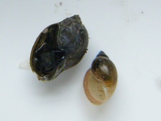 シジミ、カワ二ナ、サカマキガイ(外来)