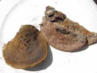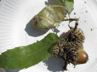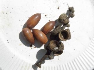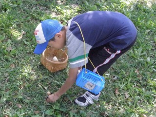 【左】キノコが少なかったのでドングリを拾いました。 【右】芝生のところでキノコを見つけました。
