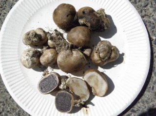 【左】ついにゲットしました。 【右】ホコリタケの仲間が生えていました。