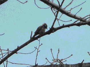 【左】カンムリカイツムリが悠然と泳いでました  【右】コゲラが盛んにえさを求めて・・・・