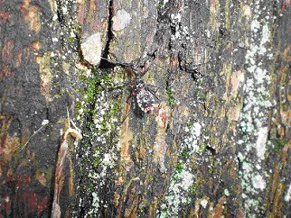 クルマモドキバッタのモズの早煮え・ウメノキゴケの仲間・ウギイスゴケの仲間の観察
