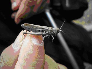 【右】ヒナバッタ(平地から山地まで広く草地に生息、雄はよく鳴きます。卵越冬)