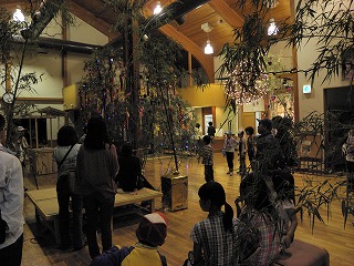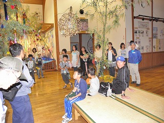 【左】本日の予定をお話  【右】梅の館では七夕準備