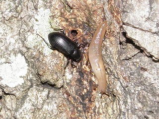 【右】ユミアシゴミムシダマシとチャコウラナメクジ(外来)