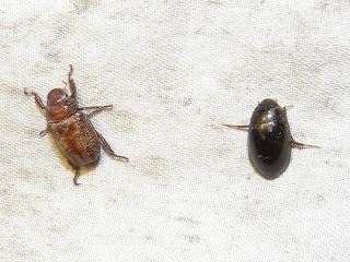 【右】左、コイチャコガネ。右、ヒメガムシ