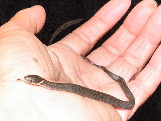 【右】ヒバカリが水田にカエルを食べに来ていました。