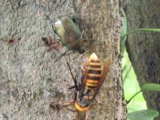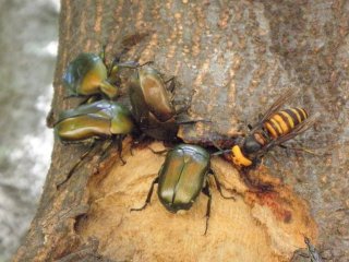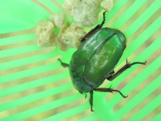 【左】カブトが鳥に食べられたみたいで動いていました。