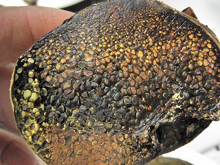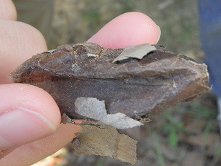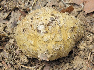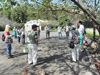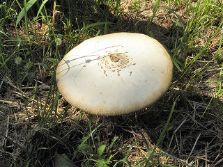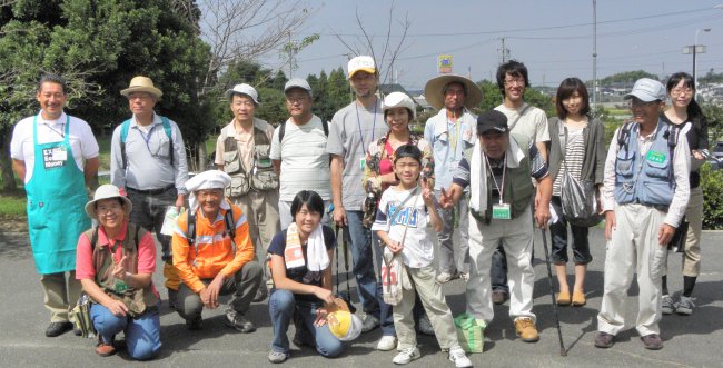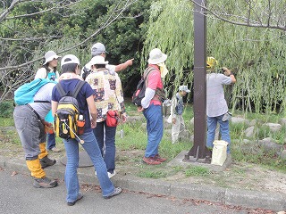 今回の観察会は、EXPOエコマネーセンターと知多市自然調査隊との共催のかたちで行われることになりました。23日に雨が降りましたが、この時期にしては乾燥気味でキノコは少ないのではないかと不安でした。最初は目が適応していないのか、なかなか見つかりませんでしたが大きなオオシロカラカサダケを見つけて一安心しました。途中でメダカかダヤシかを調べたところ採取した3尾がカダヤシばかりだったので詳しい調査が必要となりました。アラカシやシイ等の林の中ではテングタケの仲間が、小高く盛り上がって開けたところにジャガイモのように見えるコツブタケやメロンパンのようなホコリタケの仲間が見つかりました。最初の集合場所に戻る途中で、柳の木の洞に生えたヤナギマッタケを写真に撮ったり、採取して匂いを嗅いだりしました。かすかにマッタケを連想させる匂いは大部分の人たちに好評でした。最初の集合場所に戻って皆の採取したキノコを紹介しました。EXPOエコマネーセンターから参加者全員にエコマネーのポイントカードが配られ、集合写真を撮ってから解散しました。(記・大野)