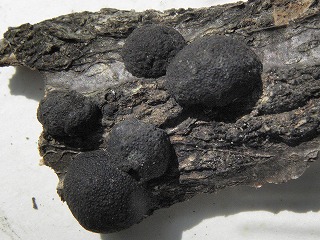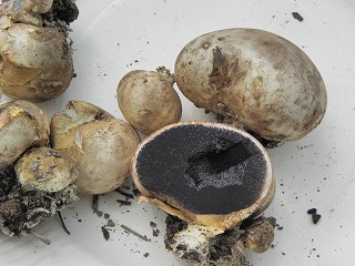 【左】クロコブタケ       【中】ヒメカタショウロ(毒)        【右】コウジタケ(食)