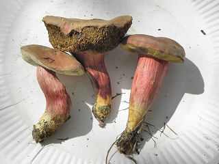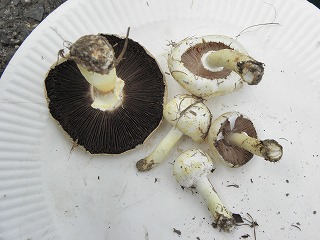 【左】ニガクリタケ(強毒)       【中】キヒダタケ(老化している)       【右】トガリベニヤマタケ