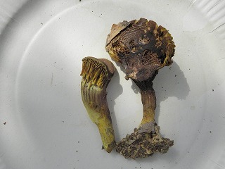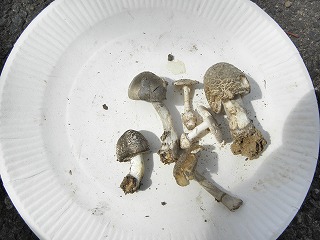 【左】意外とキノコがありました。       【右】本日の特種、ヤナギマツタケ