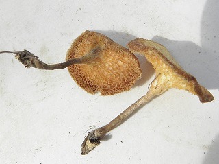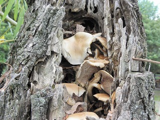 【左】ヤナギマツタケはいい匂いでした。  【右】ヤナギに生えたヤナギマツタケ