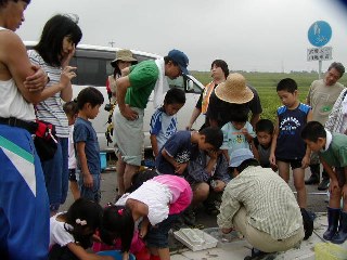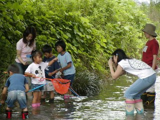 矢勝川では、タモロコ、モツゴ、コイ、ヨシノボリやアメリカザリガニ、おたまじゃくしを観察。