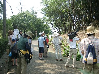 【右】この林の中で、カブトムシの雌を見つけたお父さんがいました。今年は例年になく、樹液も出ていなくて、カブトやクワは無理だなと思っていましたが、見つけたので、参加者は希望を持ちました。朝早く来ようとか…。