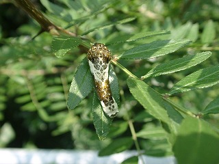 【右】イヌザンショウにアゲハの幼虫がいました。サンショウもミカンの仲間なので、アゲハが来て卵を産みます