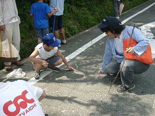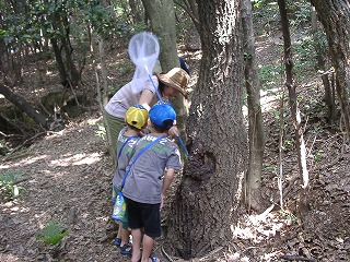 下記掲載の写真にはありませんが、パパ、ママのがんばりもあってか、セミなどはもちろんとしても、アオスジアゲハ、オニヤンマ、カブトムシもゲットできました。ちなみに、オニヤンマのゲットは知多自然観察会の行事の中では、大変珍しいことです。
