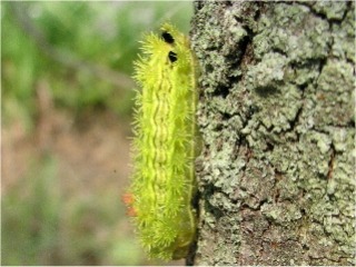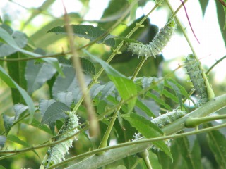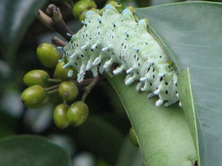 【右】シンジュサン…クロガネモチの葉を食べているところです