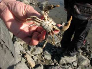 【左】タカノケフサイソガニ 【右】オオミノガ