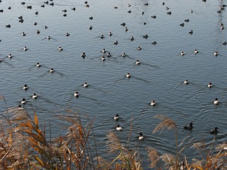 ホシハジロ(+++)、ハシビロガモ(++)、オナガガモ(++)、ヒドリガモ(++)、カルガモ(+)、キンクロハジロ(+)、コガモ(+)、カイツムリ(+)、アオサギ、ケリ、セグロセキレイ、ハシボソガラス