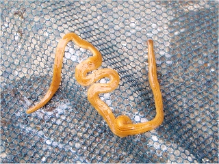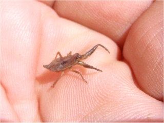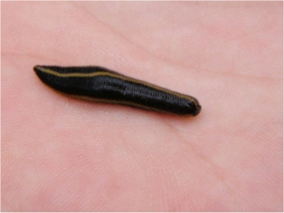 【左】コウガイビル…どういうわけか水路にいました 【右】田んぼの脇の水たまり 【左】水たまりにいたヒメタイコウチ
