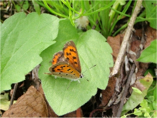 【左】田んぼで泳いでいたヒル…このヒルは“チスイヒル”ではない、よく似ていますが(^_^;) 【右】毛虫の説明中かな? 【左】ベニシジミ…他の種類もいたけど飛び回って撮れない
