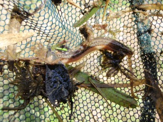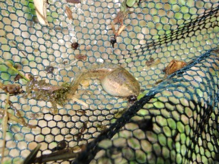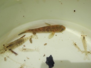 【左・右】水たまりにいたドジョウ、オタマジャクシ  【左】水路でぽんつく…余りゲットできなかった
