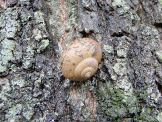 【左】池にいたスジエビ、トンボのヤゴ…ギンヤンマ、タイコウチ 【右】柳の幹にいたウスカワマイマイ…草の葉っぱの上にもいた 【左】池でゲットしたものを見ている